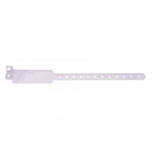 The wide-face vinyl wristband is adjustable. His length is 250 mm and it has an enlarged band that can be used as a writing (with an indelible marker) or as a marking (via screen printing) area.