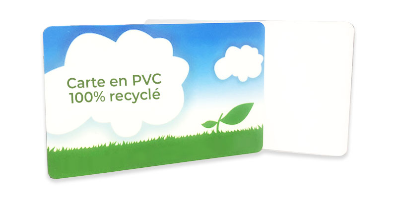 Ces cartes sont fabriquées en PVC 100 % recyclé. Le PVC est un matériau bien connu des filières de recyclage. En effet, il peut être recyclé plusieurs fois sans que ses propriétés d’origine ne soient dégradées.